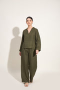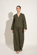 100% Linen Kurta Co-ord Set – Olive