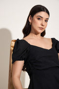 A timeless mini made from 100% linen, featuring soft puff sleeves and a flattering sweetheart neckline. The low V-back adds a touch of allure, balancing feminine charm with everyday ease. Perfect for brunches, dates, or warm evening strolls.