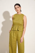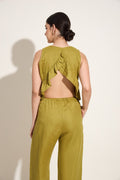 100% Linen Ruffle Back Sleeveless Top – Olive